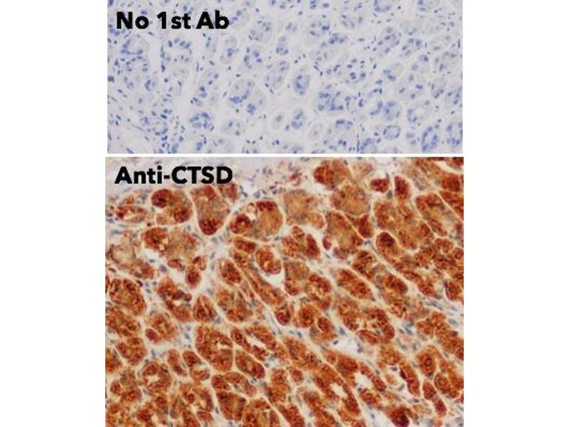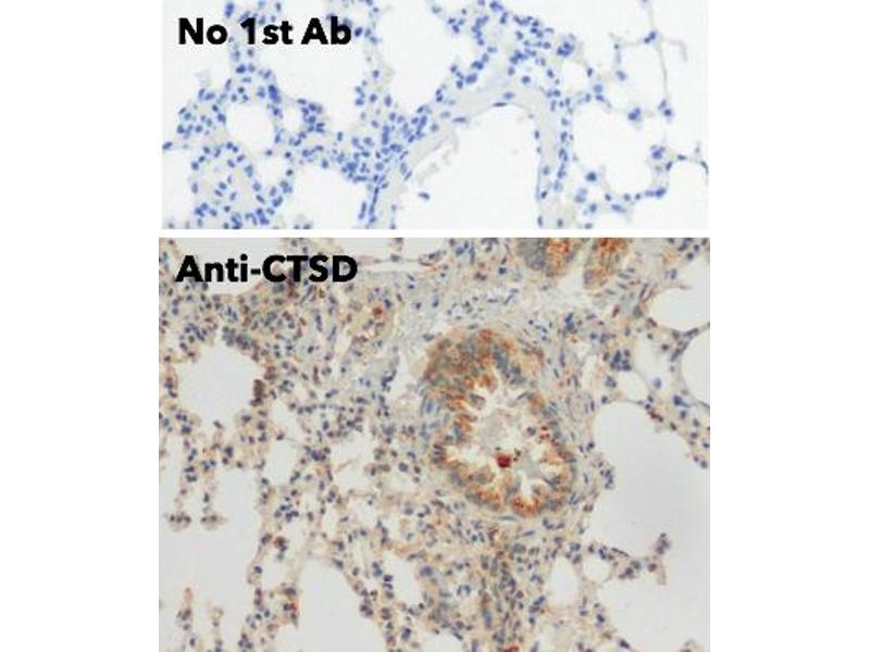 Goat polyclonal antibody to Cathepsin D. Cathepsin D is a lysosomal aspartic protease of the pepsin family. Acid protease active in intracellular protein breakdown. It is composed of a dimer of disulphide-linked heavy and light chains, both produced from a single protein precursor. It is involved in the pathogenesis of several diseases such as breast cancer and possibly Alzheimer disease.
