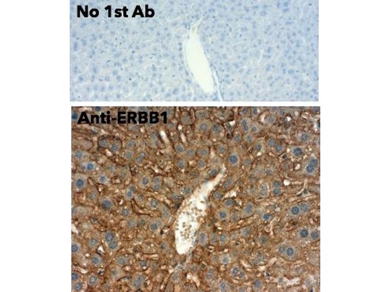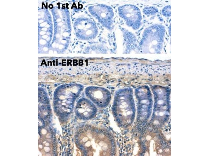 Goat polyclonal antibody to ERBB1. ERBB1 is a transmembrane glycoprotein that is a member of the protein kinase superfamily and a receptor for members of the epidermal growth factor family. It is a cell surface protein that binds to epidermal growth factor inducing receptor dimerization and tyrosine autophosphorylation and leading to cell proliferation. This receptor has been associated with cancer. Different protein isoforms encoded by multiple alternatively spliced transcript variants have been found for this gene.