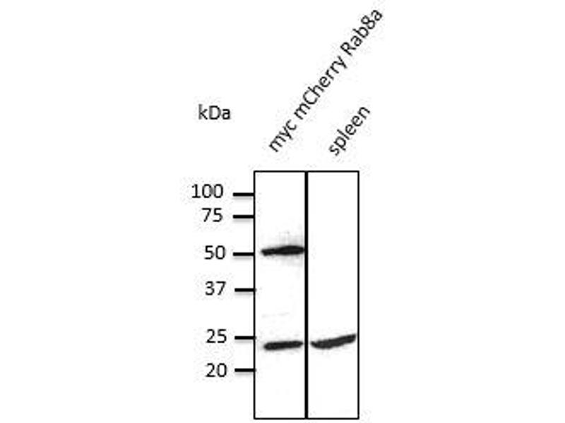 - Detects total Rab8 protein in the following human, rat and mouse whole cell lysates and transfected cells with GFP-Rab8a and GFP-Rab8b cds by Western blot.