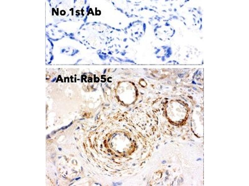 Goat polyclonal antibody to Rab5c. Rab5c belongs to the small GTPase superfamily, Rab family. Rab5c is an Early Endosome Marker and functions as a key regulator of vesicular trafficking during early endocytosis.