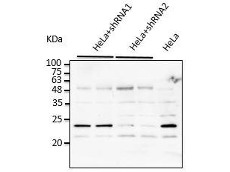- Purified recombinant peptide derived from within residues 110 aa to the C-terminus of mouse Rab7a produced in E. coli.