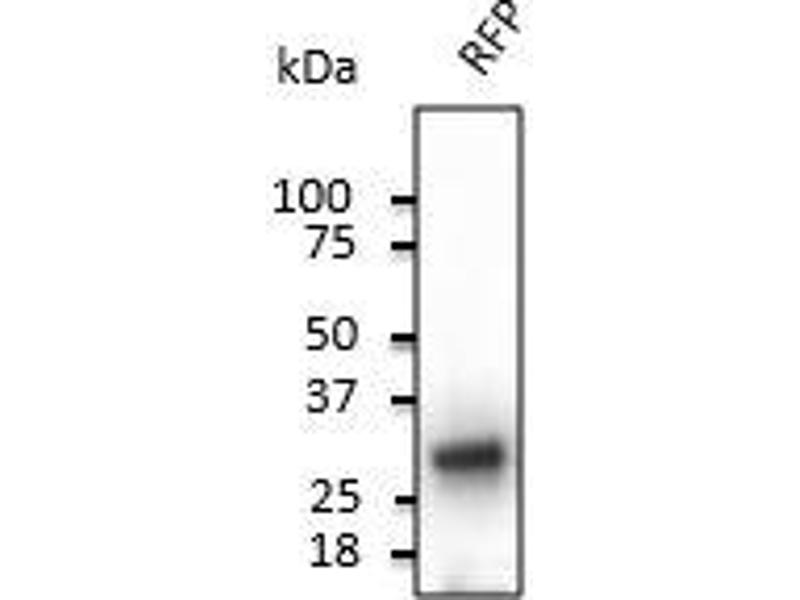 Goat polyclonal antibody to RFP (Red fluorescent protein). RFP is derived from DsRed, an engineered red fluorescent protein from so-called disc corals of the genus Discosoma.