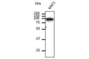 - Detects a band of approximately 95 kDa by Western blot in MNT1 and SH-SY5Y cell lysates.