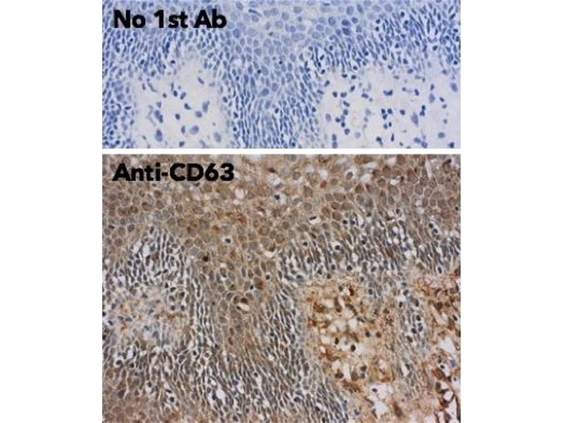 CD63 antigen, CD63 antigen (melanoma 1 antigen), granulophysin, LAMP-3, lysosomal-associated membrane protein 3, lysosome-associated membrane glycoprotein 3, ME491, melanoma-associated antigen, melanoma 1 antigen, melanoma-associated antigen ME491, MLA1, ocular melanoma-associated antigen, OMA81H, tetraspanin-30, TSPAN30 antibody.