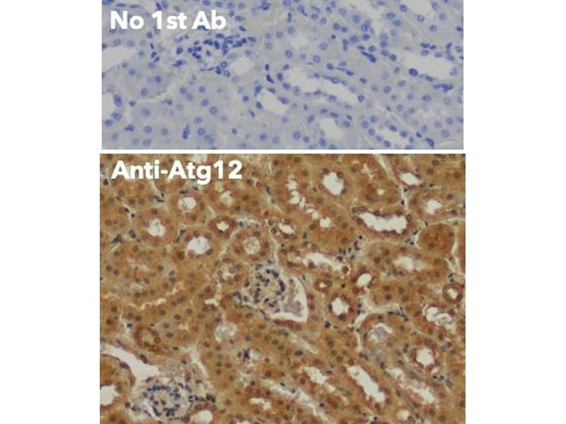 - Purified recombinant peptide within residues 65 aa to the N-terminus of human ATG12 produced in E. coli.