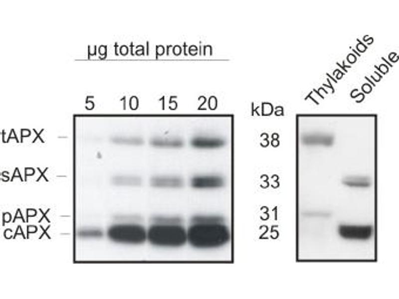 - BSA-conjugated synthetic peptide derived from Arabidopsis thaliana tAPX (thylakoidal ascorbate peroxidase) UniProt: Q42593-1