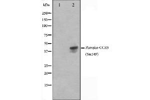 - Phospho-CCR5 (Ser349) Antibody detects endogenous levels of CCR5 only when phosphorylated at Sersine 349.