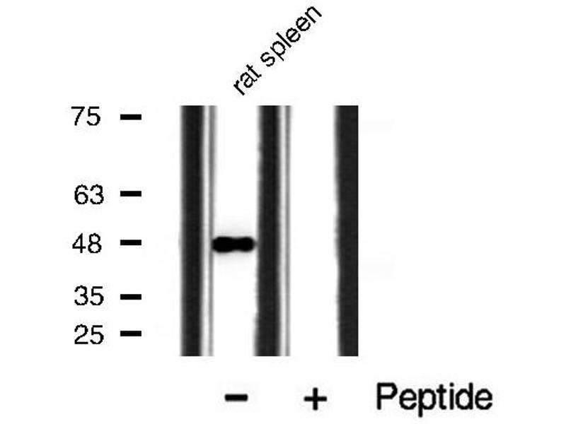 - The antibody is from purified rabbit serum by affinity purification via sequential chromatography on phospho- and non-phospho-peptide affinity columns.