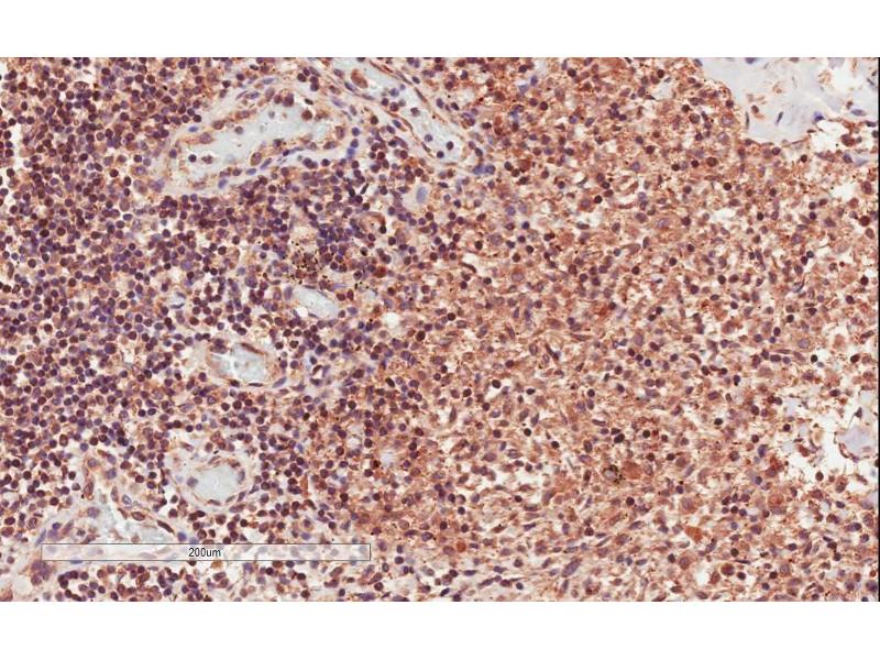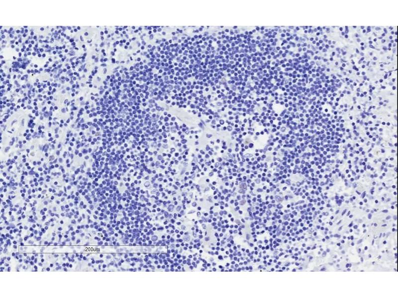 Immunohistochemistry: In paraffin embedded Human Lymph Node shows membrane staining in the paracortex. Recommended concentration: 1-2 μg/mL.