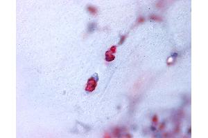 Usage: Immunohistochemistry: This antibody was validated for use in immunohistochemistry on a panel of 21 formalin-fixed, paraffin-embedded (FFPE) human tissues after heat induced antigen retrieval in pH 6.0 citrate buffer. After incubation with the primary antibody, slides were incubated with biotinylated secondary antibody, followed by alkaline phosphatase-streptavidin and chromogen. The stained slides were evaluated by a pathologist to confirm staining specificity. The optimal working concentration for this antibody was determined to be 7 μg/mL. -