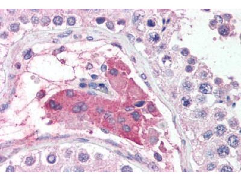 Usage: Immunohistochemistry: This antibody was validated for use in immunohistochemistry on a panel of 21 formalin-fixed, paraffin-embedded (FFPE) human tissues after heat induced antigen retrieval in  pH 6.0 citrate buffer. After incubation with the primary antibody, slides were incubated with biotinylated secondary antibody, followed by alkaline phosphatase-streptavidin and chromogen. The stained slides were evaluated by a pathologist to confirm staining specificity. The optimal working concentration for this antibody was determined to be 5 μg/mL.