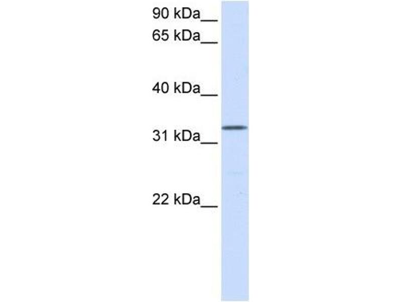 - 34 kDa (MW of target protein)