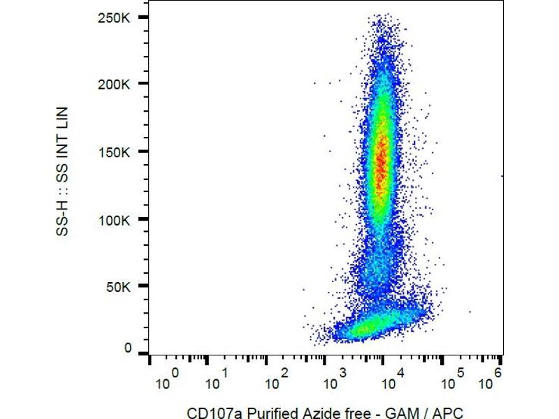 The mouse monoclonal antibody H4A3 recognizes an extracellular/luminal epitope of CD107a, an approximately 100-120 kDa glycoprotein expressed mainly on lysosomal, but also on the plasma membrane.