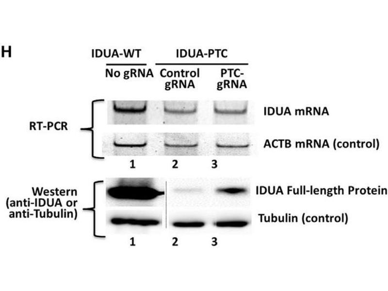 - IDUA antibody was affinity-purified from rabbit antiserum by affinity-chromatography using epitope-specific immunogen.