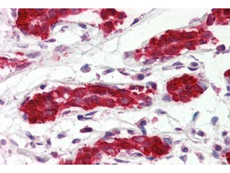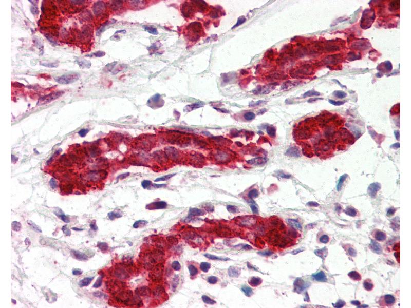 Usage: Immunohistochemistry: This antibody was validated for use in immunohistochemistry on a panel of 21 formalin-fixed, paraffin-embedded (FFPE) human tissues after heat induced antigen retrieval in pH 6.0 citrate buffer. After incubation with the primary antibody, slides were incubated with biotinylated secondary antibody, followed by alkaline phosphatase-streptavidin and chromogen. The stained slides were evaluated by a pathologist to confirm staining specificity. The optimal working concentration for this antibody was determined to be 5 μg/mL. -