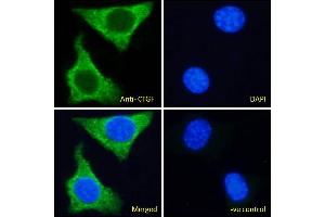 Immunofluorescence: Strong expression of the protein seen in the cytoplasm of NIH3T3 cells. Recommended concentration: 5μg/ml.