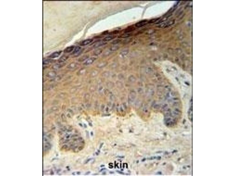 This KRT35 antibody is generated from rabbits immunized with a KLH conjugated synthetic peptide between 352-380 amino acids from the C-terminal region of human KRT35.