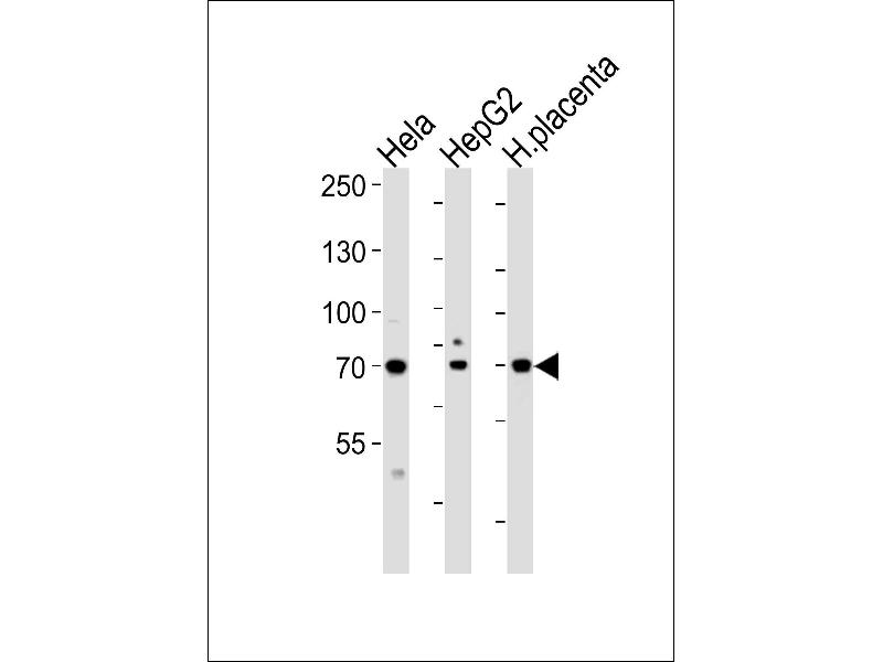This CREBL1 antibody is generated from rabbits immunized with a KLH conjugated synthetic peptide between 560-589 amino acids from the C-terminal region of human CREBL1.