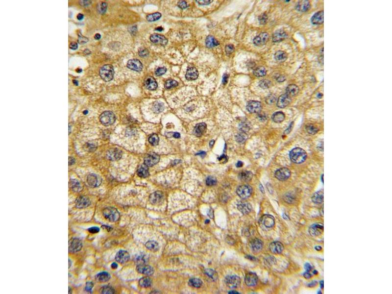This ADIPOR1 antibody is generated from rabbits immunized with a KLH conjugated synthetic peptide between 305-331 amino acids from the C-terminal region of human ADIPOR1.