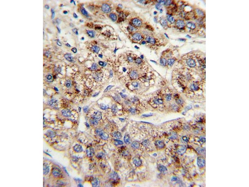 This EHHADH antibody is generated from rabbits immunized with a KLH conjugated synthetic peptide between 662-690 amino acids from the C-terminal region of human EHHADH.