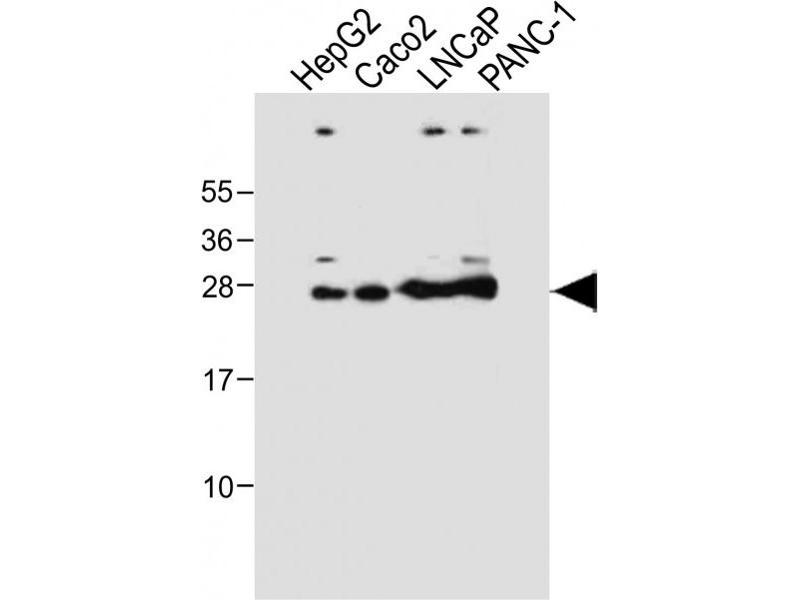 Dieser Kaninchen Polyklonal Antikörper erkennt spezifisch GSTA1 in WB. Er zeigt eine Reaktivität gegenüber Human und Maus und wurde in 1 Publikation erwähnt.