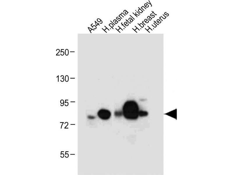 Der Kaninchen Polyklonal anti-Lactoferrin Antikörper wird verwendet zum Nachweis von Lactoferrin in Proben von Human und Maus. Er wurde validiert für WB und FACS.