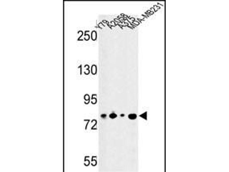 Der Kaninchen Polyklonal anti-CSRP2BP Antikörper (Klon RB23284) (ABIN652812) detektiert spezifisch CSRP2BP in WB und IHC (p).