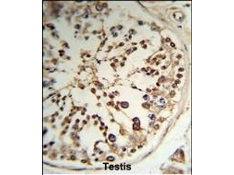 This TPK1 antibody is generated from rabbits immunized with a KLH conjugated synthetic peptide between 34-61 amino acids from the N-terminal region of human TPK1.