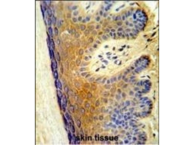 This ALOX15B antibody is generated from rabbits immunized with a KLH conjugated synthetic peptide between 597-627 amino acids from the C-terminal region of human ALOX15B.