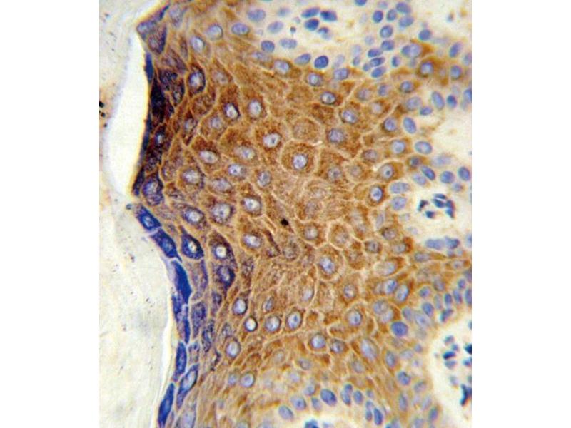 This GALNT3 antibody is generated from rabbits immunized with a KLH conjugated synthetic peptide between 454-481 amino acids from the Central region of human GALNT3.