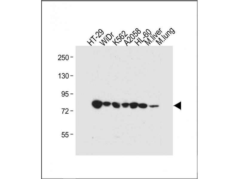 Der Kaninchen Polyklonal anti-Glucuronidase beta Antikörper wird verwendet zum Nachweis von Glucuronidase beta in Proben von Human und Maus. Er wurde validiert für WB, FACS und IHC (p).
