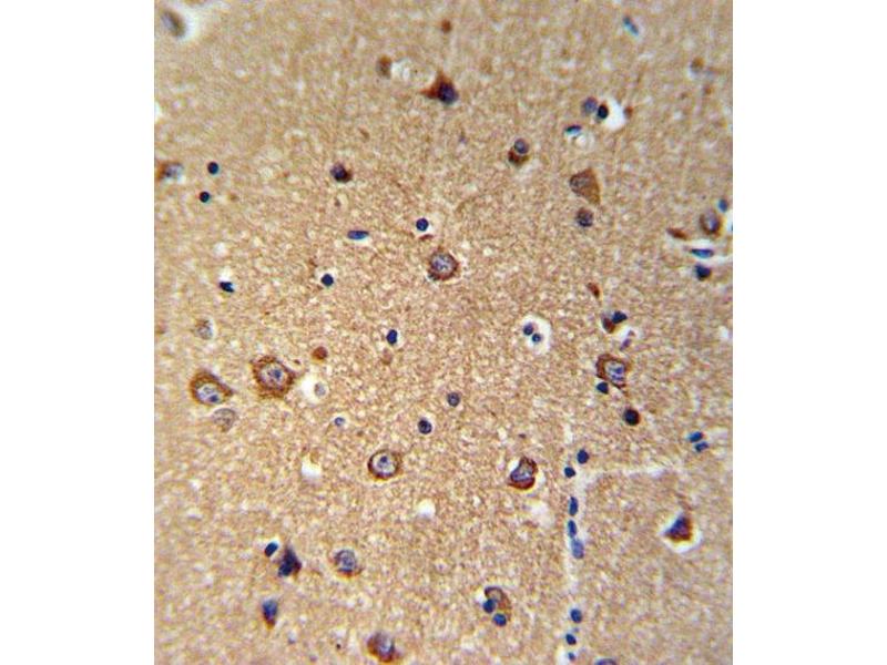 This ANKH antibody is generated from rabbits immunized with a KLH conjugated synthetic peptide between 464-492 amino acids from the C-terminal region of human ANKH.