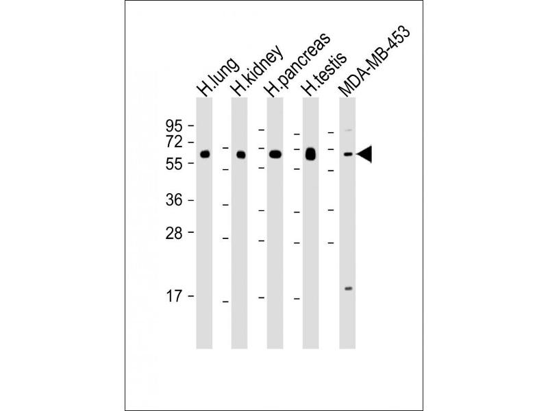 This HHLA2 antibody is generated from rabbits immunized with a KLH conjugated synthetic peptide between 58-87 amino acids of human HHLA2.