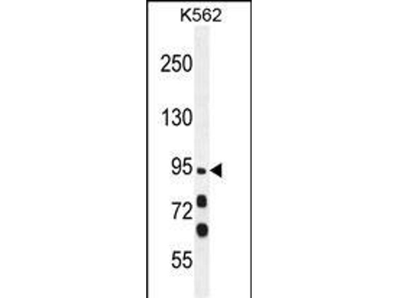 This MYO19 antibody is generated from rabbits immunized with a KLH conjugated synthetic peptide between 554-582 amino acids from the Central region of human MYO19.