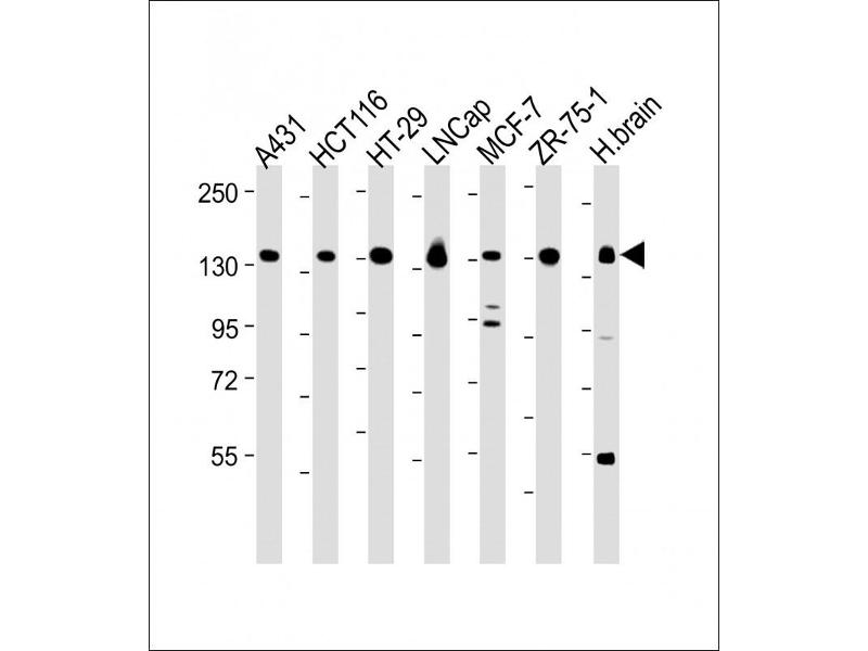 This MYO6 antibody is generated from rabbits immunized with a KLH conjugated synthetic peptide between 1166-1195 amino acids from the C-terminal region of human MYO6.