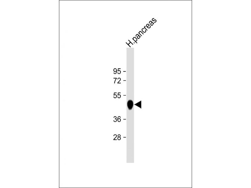 This CPB1 antibody is generated from rabbits immunized with a KLH conjugated synthetic peptide between 9-37 amino acids from the N-terminal region of human CPB1.