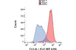 Purified antibody is conjugated with R-phycoerythrin (PE) under optimum conditions. Unconjugated antibody and free fluorochrome are removed by size-exclusion chromatography.