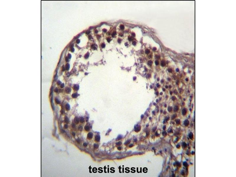 This DAZ3 antibody is generated from rabbits immunized with a KLH conjugated synthetic peptide between 445-474 amino acids from the C-terminal region of human DAZ3.