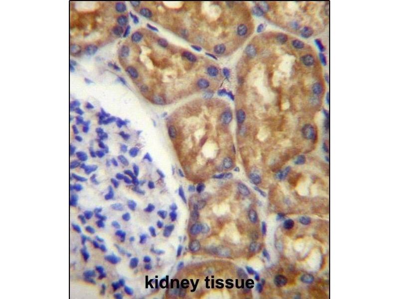 This ASS1 antibody is generated from rabbits immunized with a KLH conjugated synthetic peptide between 281-310 amino acids from the C-terminal region of human ASS1.