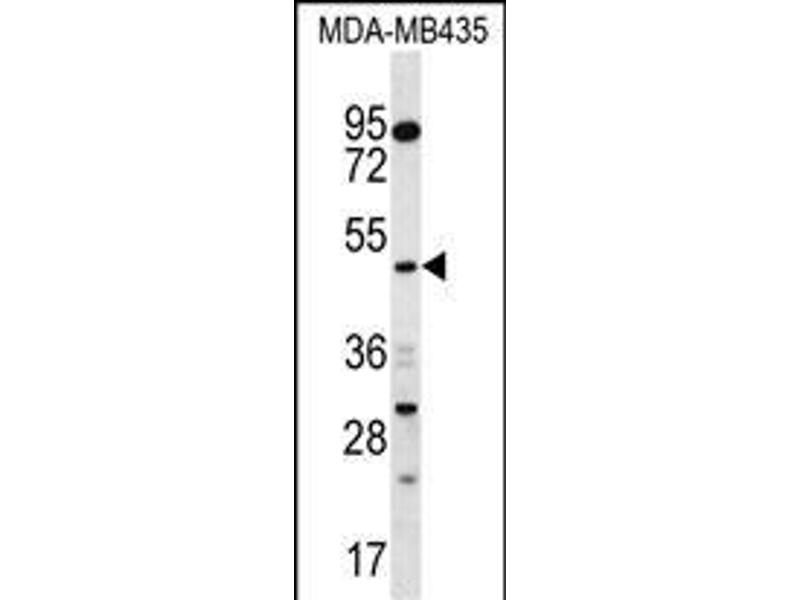 This SNX4 antibody is generated from rabbits immunized with a KLH conjugated synthetic peptide between 391-420 amino acids from the C-terminal region of human SNX4.