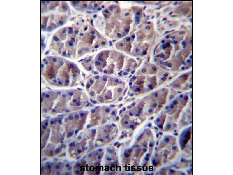 This CAPN8 antibody is generated from rabbits immunized with a KLH conjugated synthetic peptide between 290-318 amino acids from the Central region of human CAPN8.