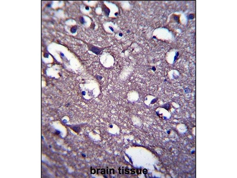 This PRR18 antibody is generated from rabbits immunized with a KLH conjugated synthetic peptide between 225-253 amino acids from the C-terminal region of human PRR18.