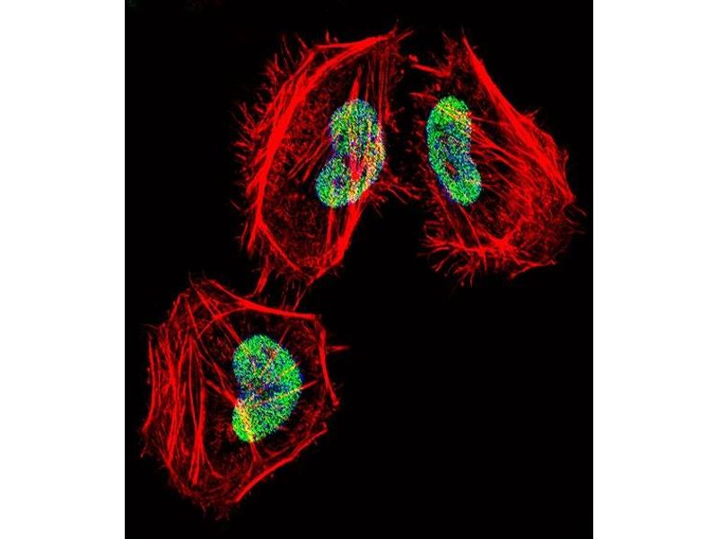 This HDAC4 antibody is generated from rabbits immunized with a KLH conjugated synthetic peptide between 1049-1077 amino acids from the C-terminal region of human HDAC4.