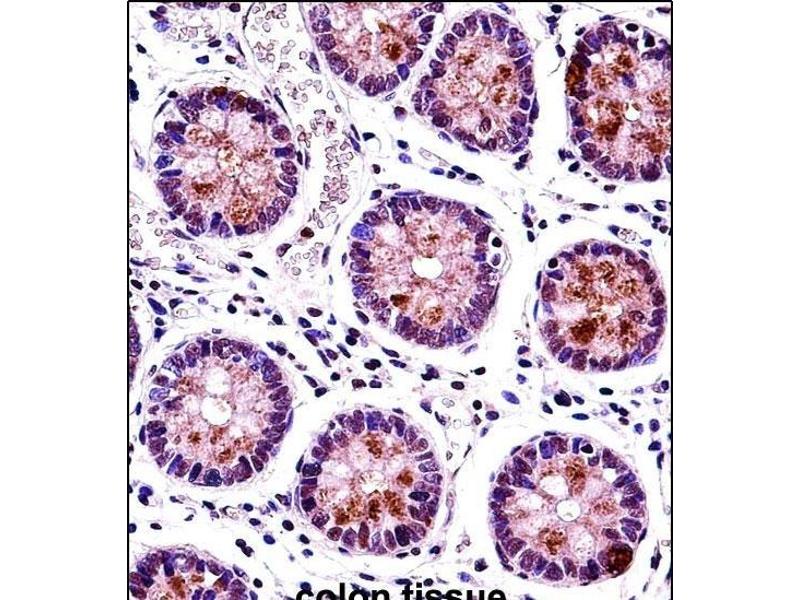 This HEXIM1 antibody is generated from rabbits immunized with a KLH conjugated synthetic peptide between 18-46 amino acids from the N-terminal region of human HEXIM1.