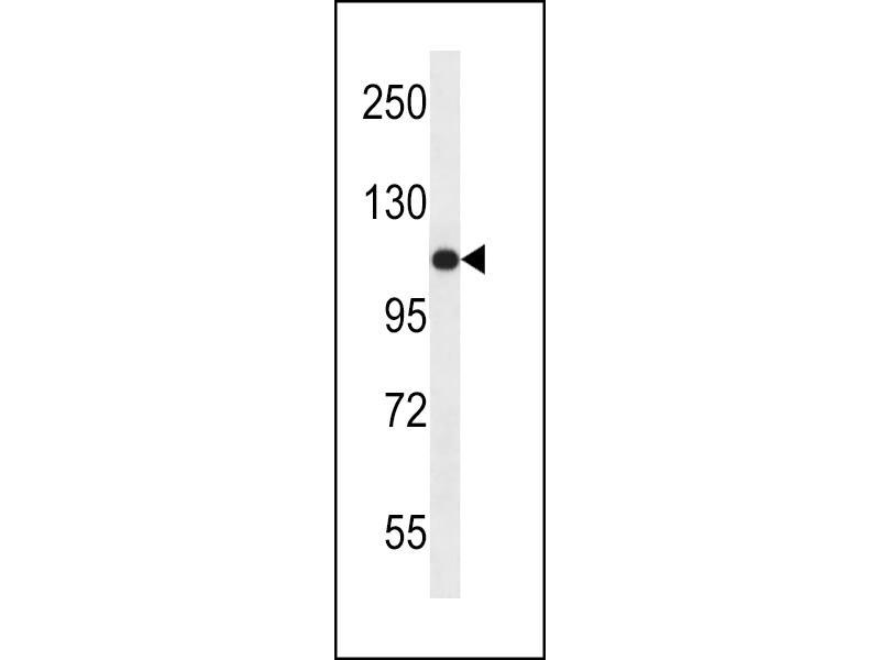 This USO1 antibody is generated from rabbits immunized with a KLH conjugated synthetic peptide between 932-960 amino acids from the C-terminal region of human USO1.