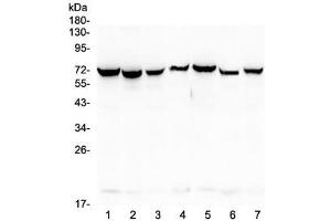 - Optimal dilution of the HSP70 antibody should be determined by the researcher.\. Western blot: 0.5-1 μg/mL,Immunohistochemistry (FFPE): 1-2 μg/mL,Flow Cytometry: 1-3 μg/10^6 cells