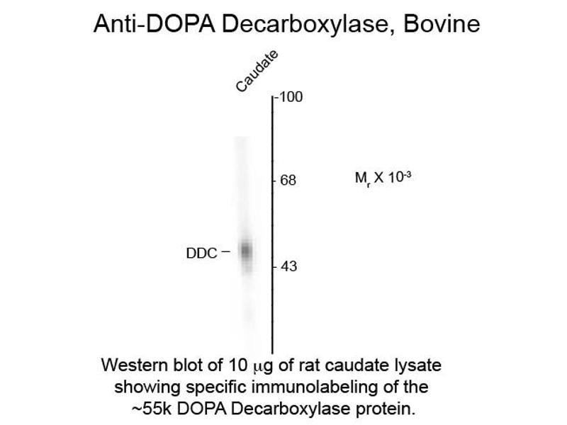 - Anti-DOPA Decarboxylase Antibody was produced in rabbit by repeated immunizations with purified from inclusion bodies and SDS denatured recombinant bovine aromatic DOPA decarboxylase expressed in E. coli.