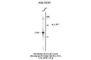 Background: Glial Fibrillary Acidic Protein (GFAP) was discovered by Amico Bignami and co-workers as a major fibrous protein of multiple sclerosis plaques. It was subsequently found to be a member of the 10nm or intermediate filament (IF) family, specifically the IF family Class III, which also includes peripherin, desmin and vimentin. GFAP is strongly and specifically expressed in astrocytes and certain other astroglia in the CNS, in satellite cells, peripheral ganglia, and in non-myelinating Schwann cells in peripheral nerves. In many damage and disease states GFAP expression is heavily upregulated in astrocytes. In addition, neural stem cells frequently strongly express GFAP. Point mutations in the protein coding region of the GFAP gene lead to Alexander disease which is characterized by the presence of abnormal astrocytes containing GFAP protein aggregates known as Rosenthal fibers. Therefore, GFAP antibody is ideal for investigators involved in neuropathologic diseases and more generally in Neuroscience.