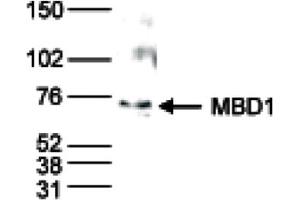 Anti-MBD1 Antibody is tested for Chromatin Immunoprecipitation, ELISA and Western Blots. Specific conditions for reactivity should be optimized by the end user. Expect a band approximately 75 kDa in the appropriate cell lysate or extract.