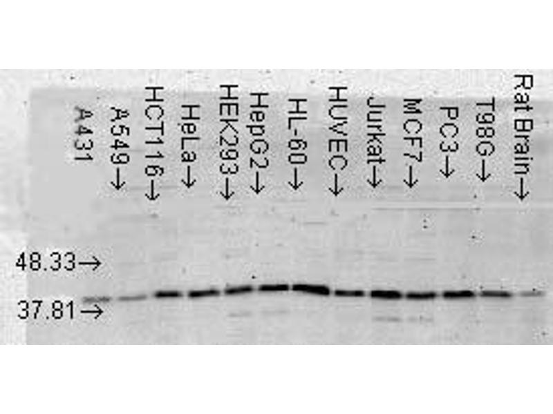 - Anti- p38 α MAP Kinase Antibody was purified by Protein G chromatography.